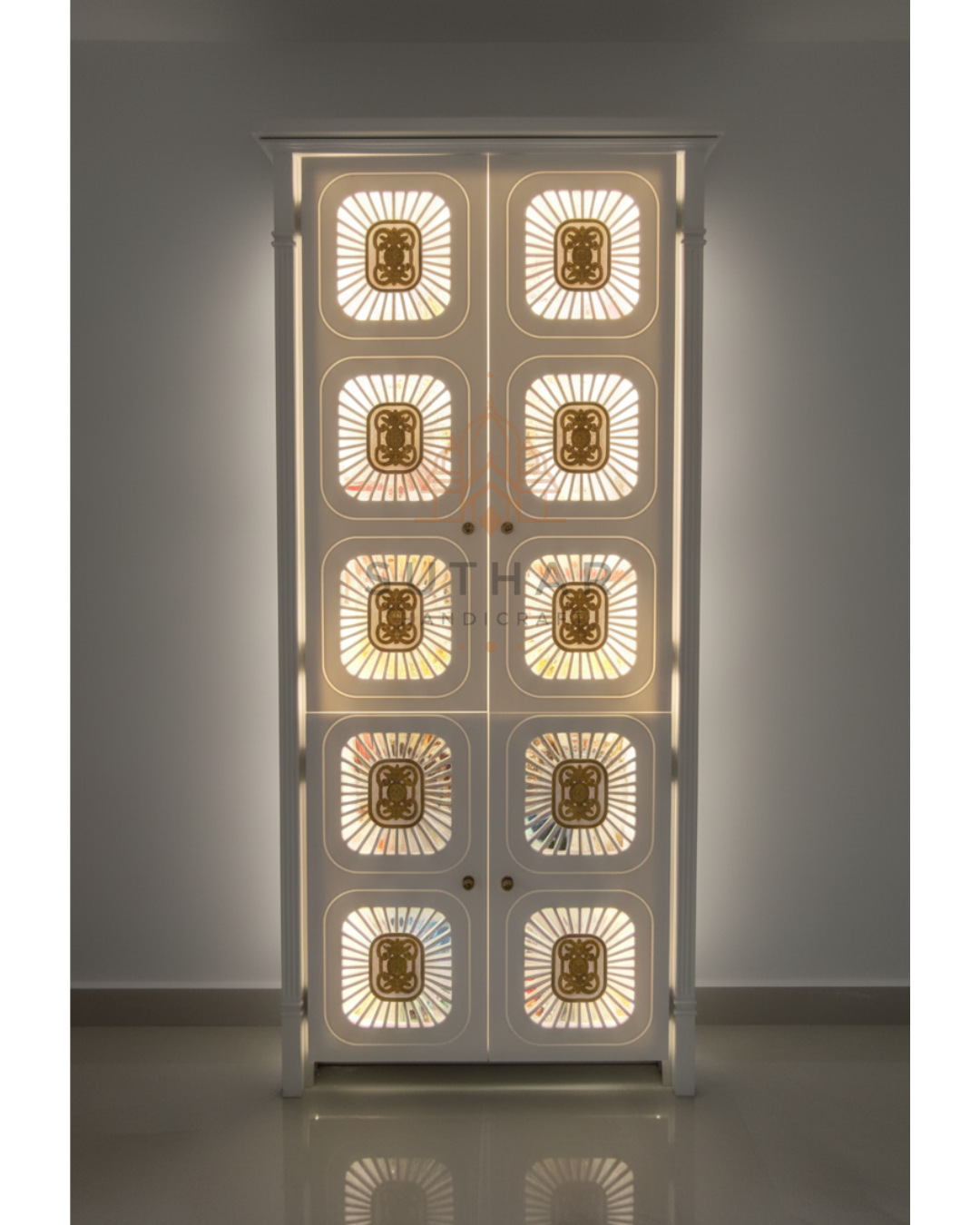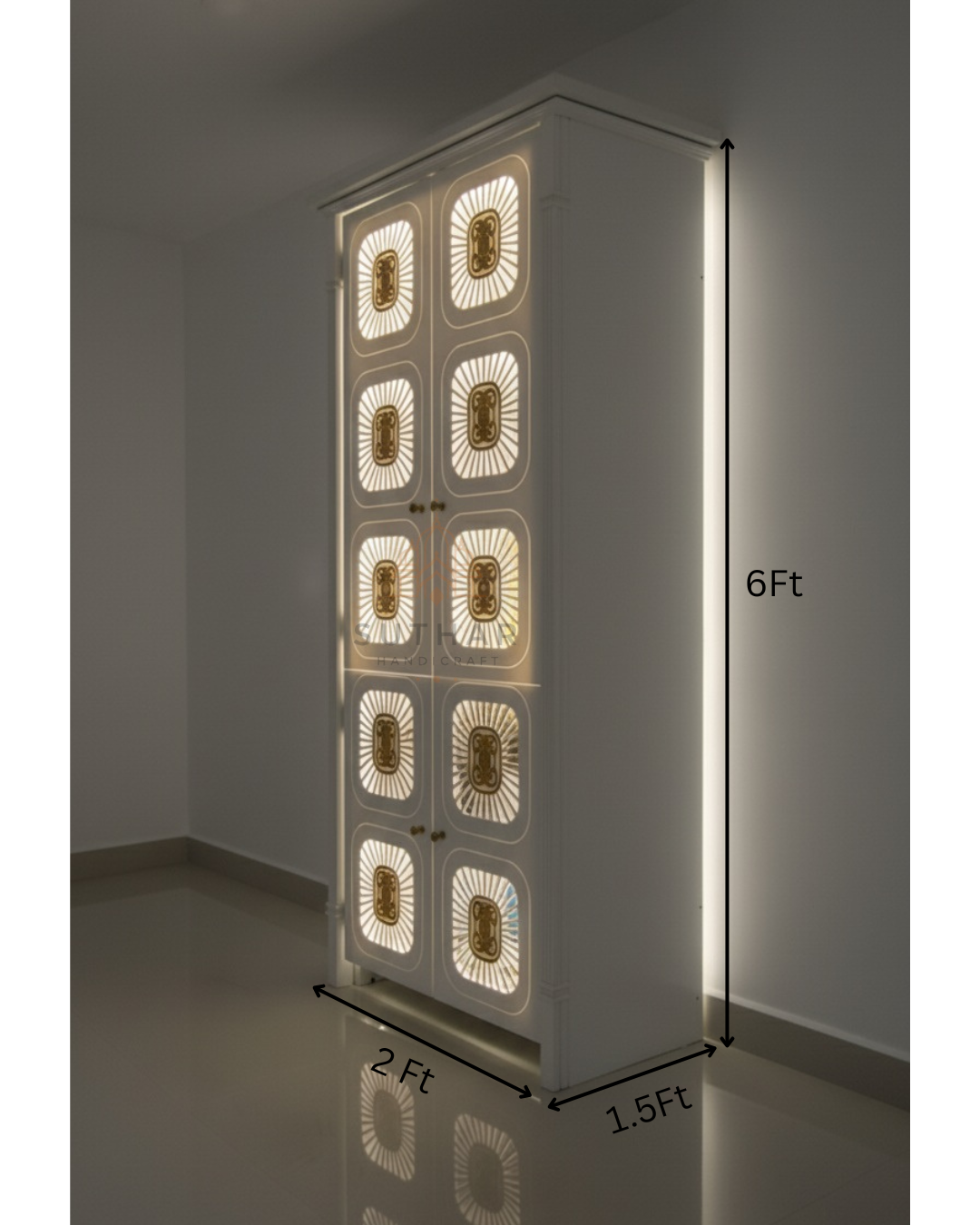 6ft Premium Corian Mandir with Doors and LED Backlit Design for Home & Office