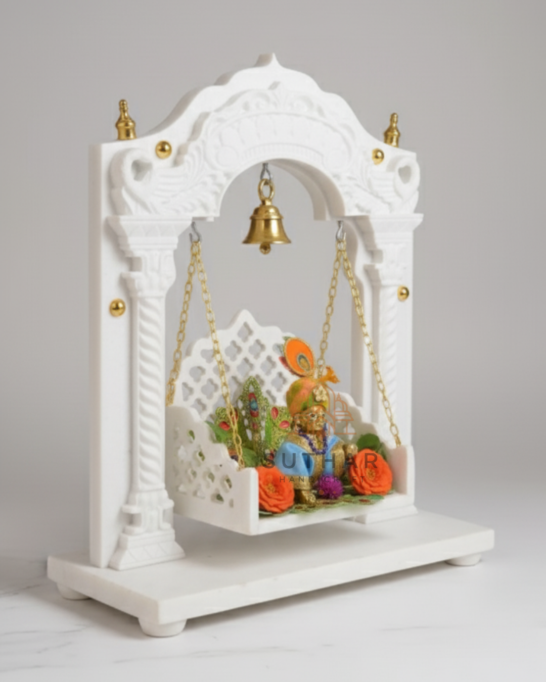 Elegant Corian Jhula for Pooja Room – Ideal for Kanha Ji & Ganpati Ji | Handcrafted Traditional Design