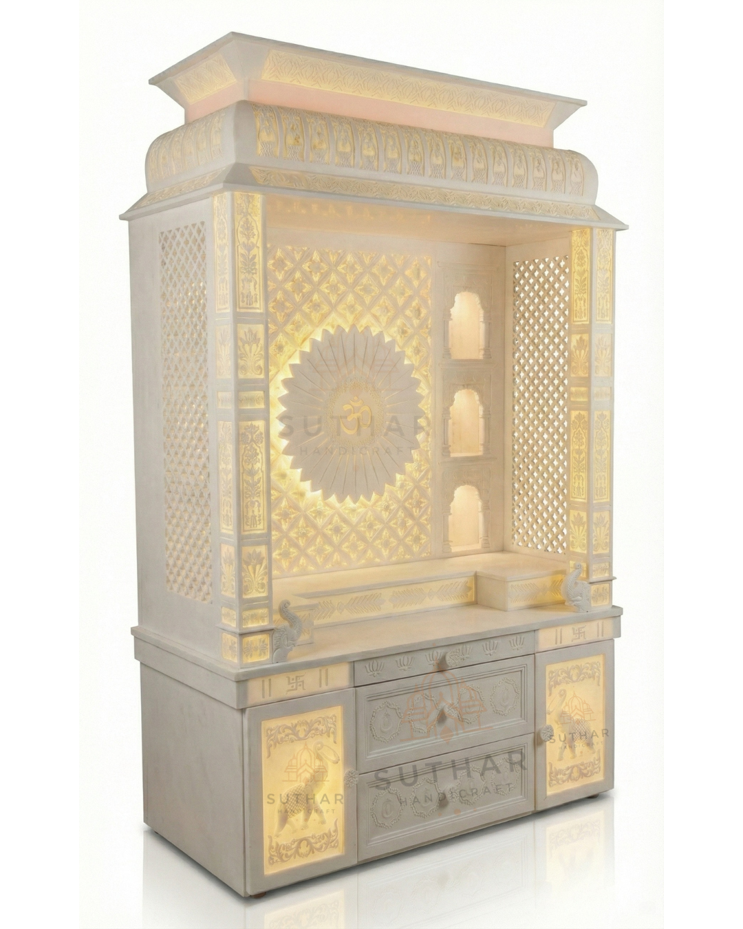 If you are planning to install a luxury corian mandir mumbai that reflects divine grace and modern elegance, this temple by Suthar Handicraft is the perfect choice. Designed for Mumbai lifestyles and crafted with devotion, this designer corian mandir mumbai transforms your pooja space into a sacred sanctuary.