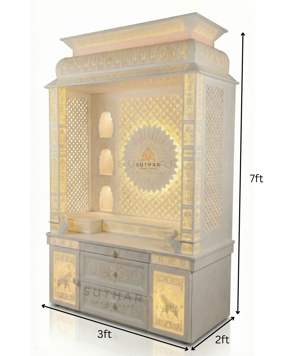 At Suthar Handicraft, each designer corian mandir mumbai is handcrafted by skilled artisans with years of experience. The temple showcases: