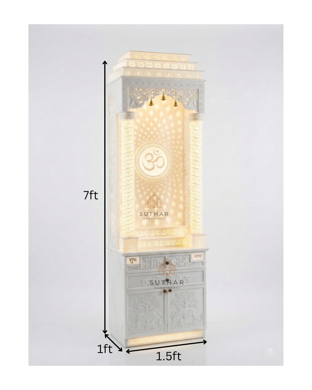 This Korean Mandir by Suthar Handicraft is designed to bring divine grace into modern homes. The tall illuminated structure creates a sacred focal point while maintaining a sleek, contemporary appearance.