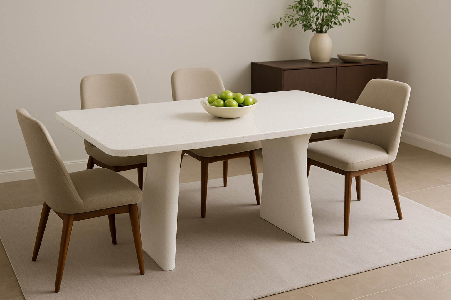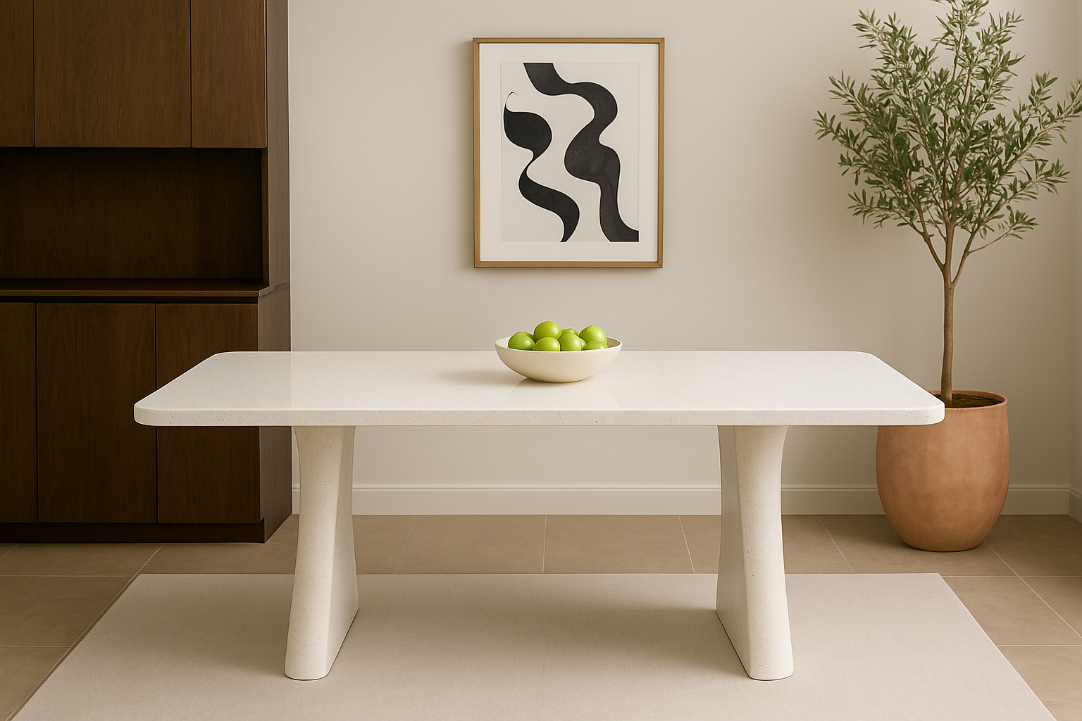 Discover the perfect blend of style and durability with our Premium Corian Dining Table, designed for modern living spaces. Crafted with a high-quality Corian tabletop and supported by strong, contemporary legs, this dining table offers a sleek, minimalist look while providing unmatched strength and resistance to stains, heat, and scratches. Ideal for family meals, gatherings, or home office use, the table’s smooth surface is easy to clean and maintain, making it a practical choice for busy households.