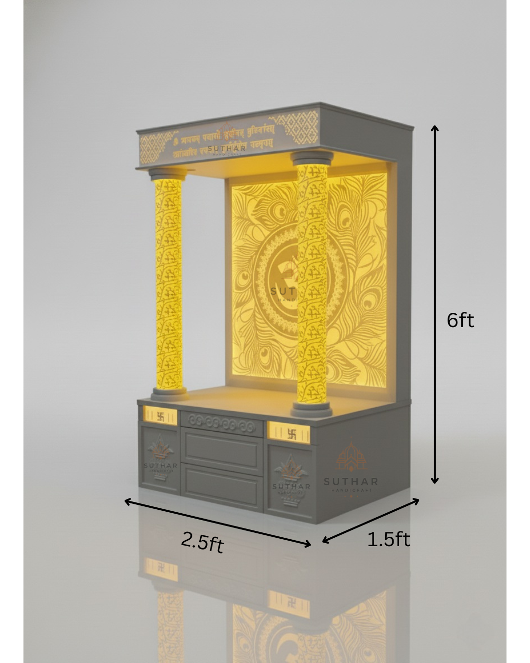 Premium 6ft Round Pillar Corian Mandir With Light – By Suthar Handicraft